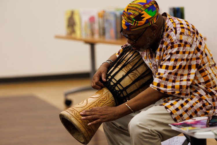 Oba William King is a storyteller of high energy, enthusiasm, a wealth of tales, and over 25 years experience. He is popular with kids and adults of all ages, offering traditional stories and fables, historical tales, stories he writes, music, movement, joy, literacy, in performances and workshops, always emphasizing unity.
